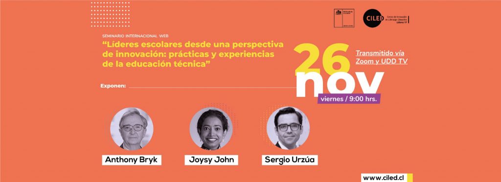 “Líderes escolares desde una perspectiva de la innovación: prácticas y experiencias de la educación técnica” es el nombre del seminario internacional web organizado por el Centro de Innovación en Liderazgo Educativo (CILED), el cual, durante una larga jornada, convocó a una gran audiencia a participar de charlas, talleres y exposiciones.