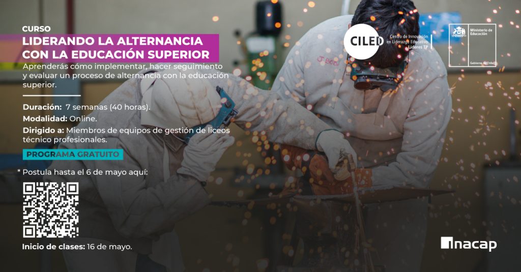 El Centro de Innovación en Liderazgo Educativo CILED abrió la convocatoria para postular al curso “Liderando la Alternancia con la Educación Superior”. Este es dirigido a miembros de equipos de gestión de liceos técnico profesionales, brindándoles las herramientas necesarias para implementar, evaluar y hacer seguimiento a un proceso de alternancia con la educación superior.