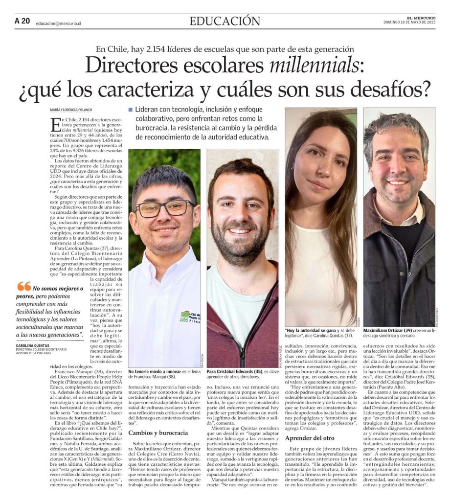 Potenciar el liderazgo educativo en este contexto es una necesidad con sentido de urgencia. Requiere formación especializada, buenos incentivos y autonomía para que los equipos directivos puedan actuar con flexibilidad según las necesidades de sus comunidades. Necesitamos líderes escolares capaces de apoyar a sus profesores como un recurso estratégico; para la escuela, para los aprendizajes de sus estudiantes y para el futuro del país.