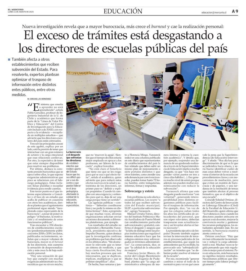 Y agrega: “Hay que revisar críticamente las normativas y reducir la carga administrativa real. Muchas veces se legisla pensando que más regulación es mejor para el sistema. Pero en educación, más burocracia no significa mejores resultados. Necesitamos políticas que liberen tiempo para liderar pedagógicamente”.