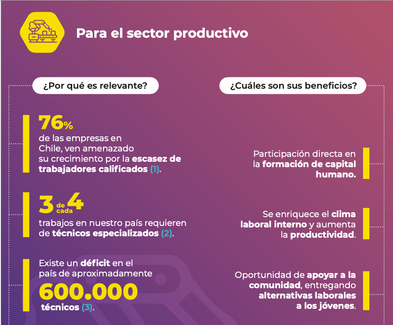 La educación media técnico profesional (EMTP) representa numerosas ventajas no sólo para los estudiantes, sino que para el sector productivo y el desarrollo a nivel país. Es por eso fundamental lograr una mayor vinculación entre la EMTP y el sector productivo, transformar esta articulación en una relación de verdaderos “socios”, y contar con estrategias formales y efectivas de vinculación.