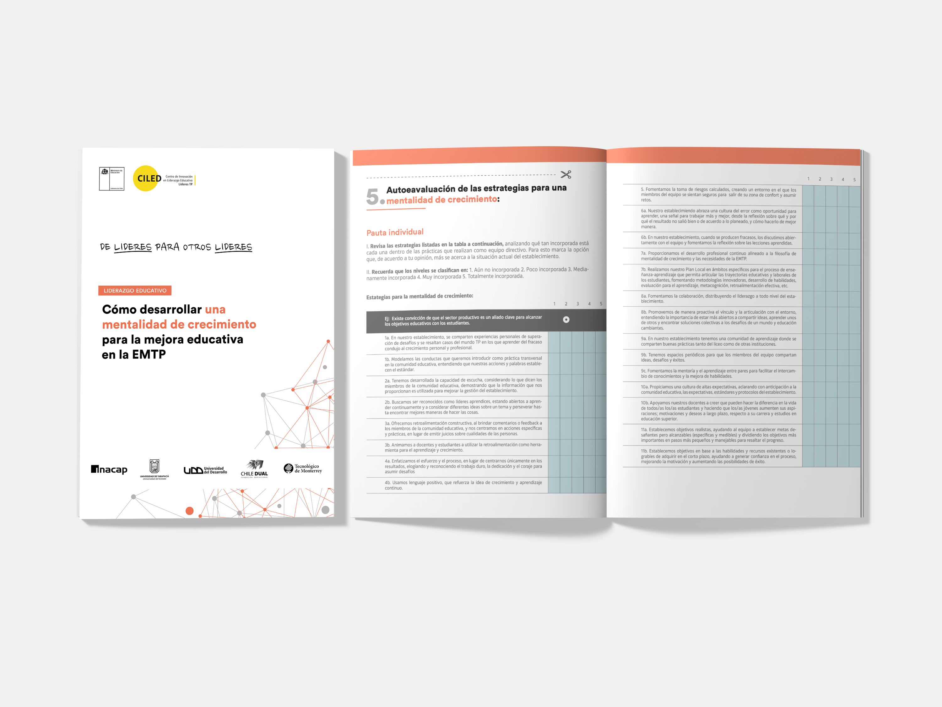 La presente herramienta entrega un conjunto de prácticas o estrategias que, de acuerdo a la literatura especializada y expertos TP, resultan clave para promover una mentalidad de crecimiento y cambiar la cultura escolar hacia una de mejora y aprendizaje continuo. Dicho recursos permite además realizar una autoevaluación de parte de los equipos directivos para definir en qué medida están incorporando dichas estrategias y cuáles podrían potenciar dentro de su gestión.