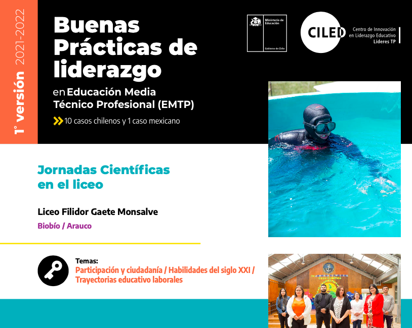Esta buena práctica consiste en la realización de diversos talleres prácticos que tengan relación con temas de relevancia científica como la sustentabilidad, los océanos y la crisis climática. En ellos participan diversos científicos, se realizan visitas a laboratorios, y se realiza una feria científica donde participan diversas instituciones.
