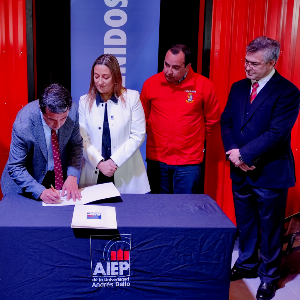 Víctor firmando un convenio en inauguración AIEP Chillán.